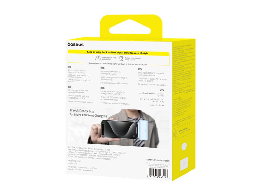 Baseus Compact ponúka 8 vrstiev bezpečnostnej ochrany. Vaše zariadenia sú chránené pred prehriatím, preťažením, nadmerným vybitím a ďalšími nebezpečnými situáciami, čo vám poskytne pokoj pri ich používaní.