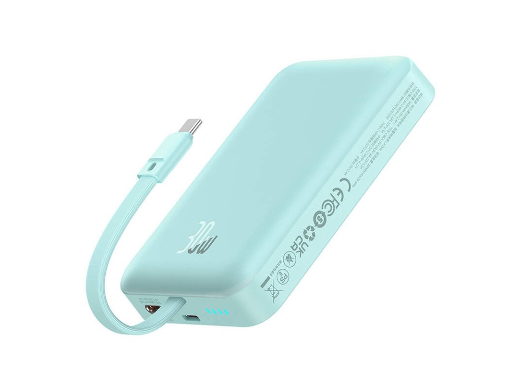 Nabíjajte svoje zariadenia bez prekážok pomocou Baseus Magnetic Mini. Powerbanka je vybavená portom USB-C a umožňuje bezdrôtové nabíjanie. Vyniká kapacitou 10 000 mAh a má LED diódy, ktoré umožňujú kedykoľvek sledovať stav nabitia. Podporuje tiež protokol rýchleho nabíjania PD 30 W. Ponúka aj výsuvný kábel na jednoduché nabíjanie powerbanky a ďalších zariadení.