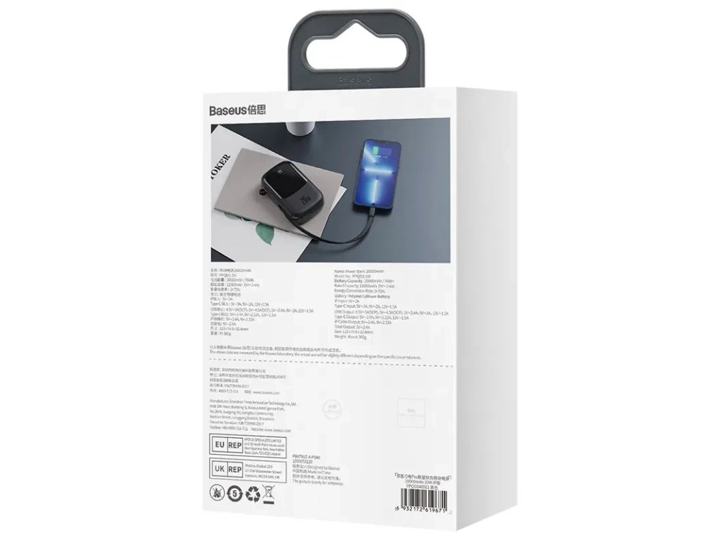 Premyslený dizajn powerbanky sa premieta do vysokej úrovne používateľského komfortu. Prehľadný displej poskytuje informácie o stave batérie a vďaka nízkej hmotnosti výrobok nespôsobuje problémy pri preprave. Praktický klip umožňuje skryť koniec zabudovaného kábla, takže sa nemusíte obávať jeho poškodenia.