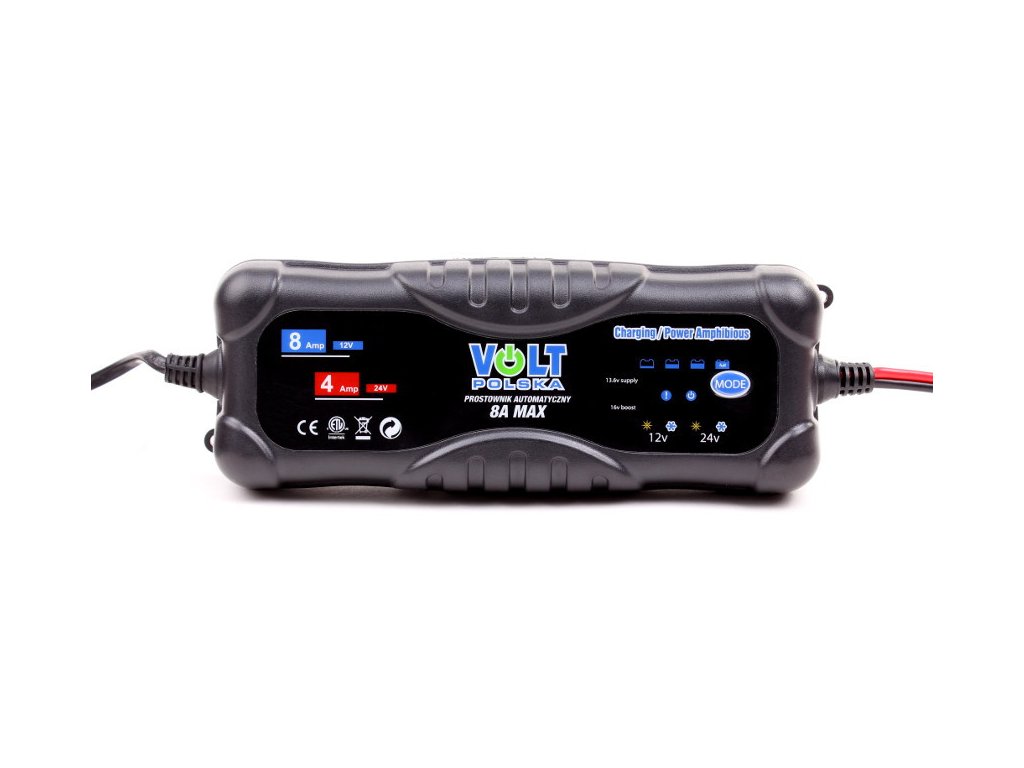 Automatyczna ładowarka (prostownik) 8A przeznaczona do ładowania 12V i 24V kwasowo – ołowiowych akumulatorów samochodowych. Do takich akumulatorów należą m.in.: akumulatory bezobsługowe VRLA (AGM i GEL), akumulatory kwasowe z ciekłym elektrolitem lub MF.
