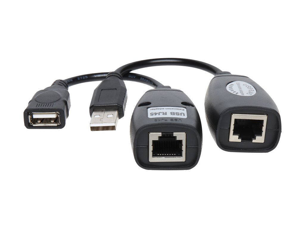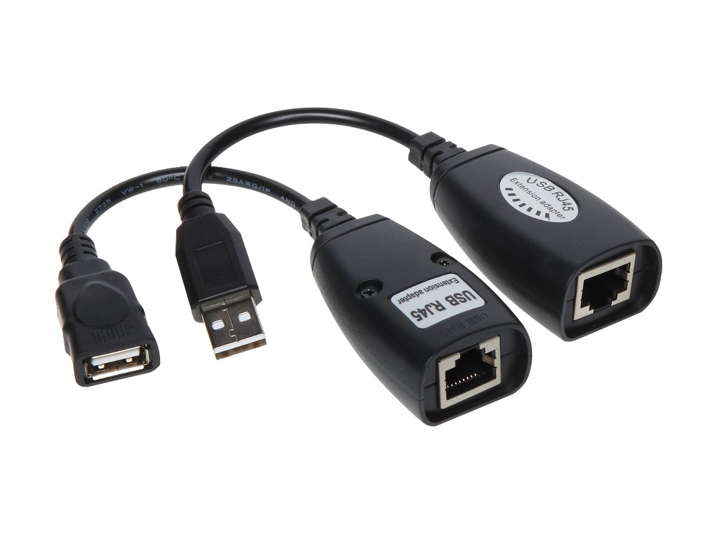 Przedłużacz myszki USB za pomocą skrętki UTP kat. 5/5e/6. Pozwala na sterowanie rejestratorem za pomocą myszki z odległego miejsca. Maks. zasięg wynosi 50 m.