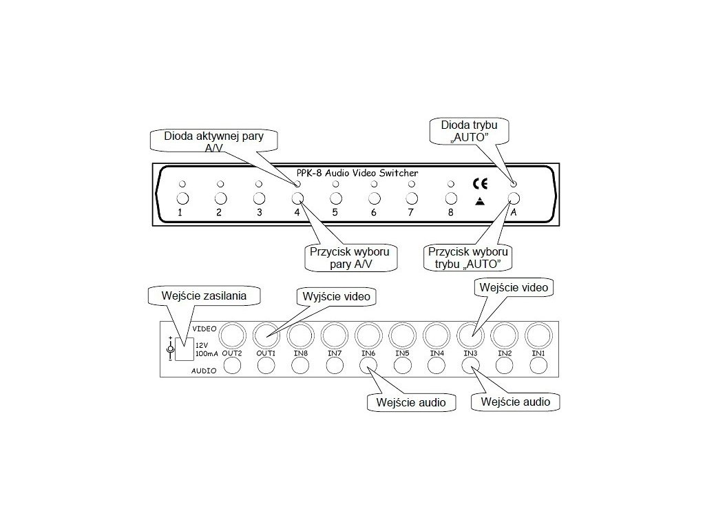 PRZEŁĄCZNIK DO KAMER ITP. PPK-8 AUDIO/VIDEO, 8 WEJŚĆ, 2 WYJŚCIA