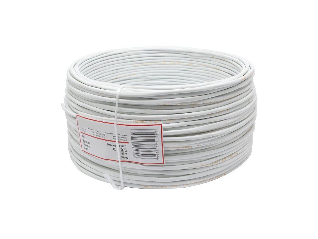 - Żyły jednodrutowe, wykonane z miedzi, o przekroju 0,5 mm2