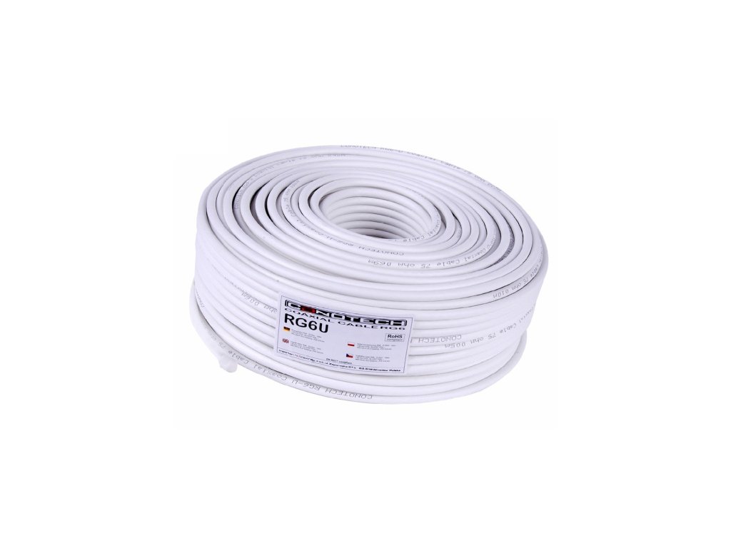 Podwójnie ekranowany kabel koncentryczny typu RG6, o żyle wewnętrznej wykonanej z drutu stalowego miedziowanego o średnicy 1,02 mm. Przewodnik został otulony polietylenem spienianym fizycznie azotem (N), cechującym się szczególnie skuteczną izolacją dielektryczną. Ekranowanie przewodu wykonane jest zgodnie ze standardem, w którym stosuje się podwójne zabezpieczenie rdzenia, składające się z warstwy folii aluminiowej AL/PET, oplotu aluminiowego o współczynniku pokrycia 75%. Powłoka zewnętrzna wykonana jest z polwinitu (PCV) w kolorze białym, o średnicy 6,8 mm, która pełni funkcję ochronną przed uszkodzeniami mechanicznymi oraz umożliwia szybkie i komfortowe prowadzenie kabla.