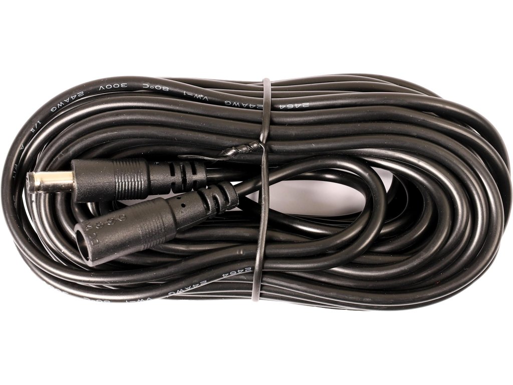 Przedłużacz zasilania o długości 15 metrów, wyposażony w standardowe złącza DC 2.1 × 5.5 mm (wtyk męski i gniazdo żeńskie). Wykonany z trwałego przewodu w kolorze czarnym, doskonale sprawdzi się przy zasilaniu kamer monitoringu IP i analogowych w niewielkiej odległości od zasilacza.
