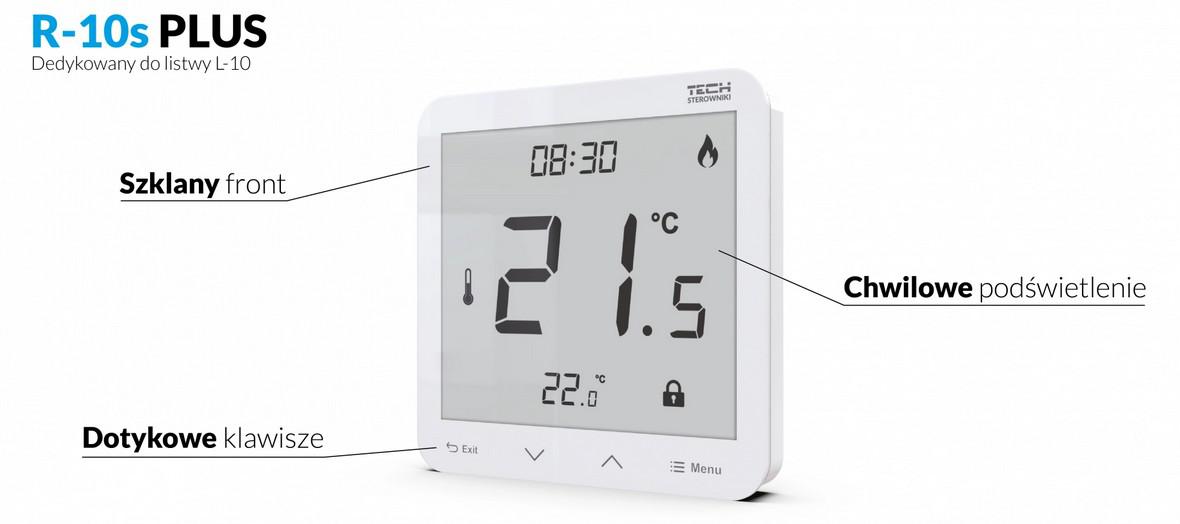 Regulator pokojowy R-10s Plus jest przeznaczony do sterowania urządzeniem grzewczym. Ma za zadanie utrzymanie zadanej temperatury pomieszczenia/podłogi poprzez przesłanie sygnału do urządzenia grzewczego lub listwy, która steruje siłownikami, z informacją o konieczności dogrzania pomieszczenia lub podłogi do wymaganej temperatury.