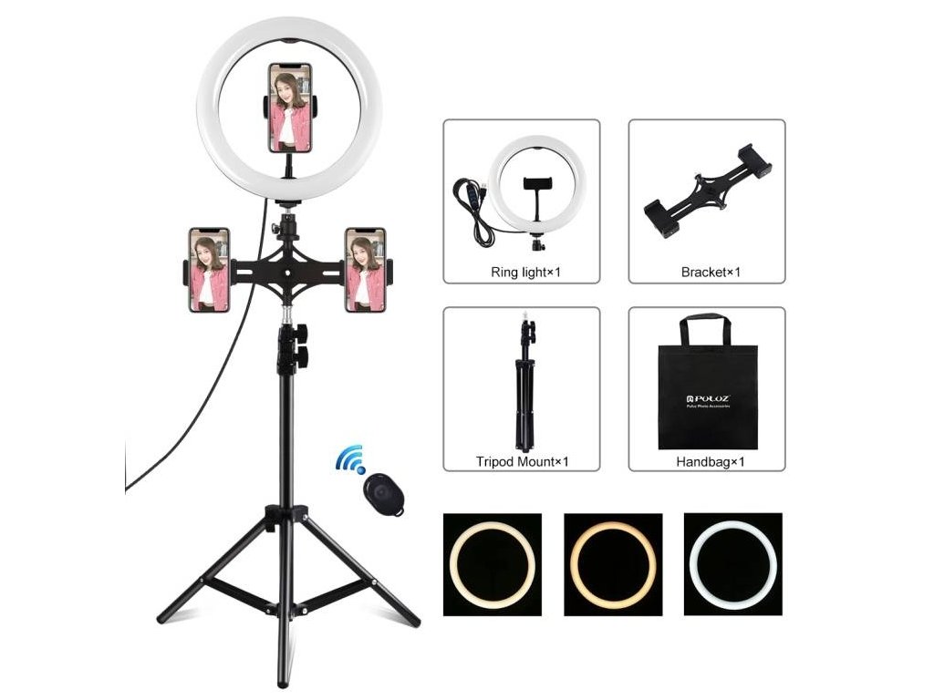 Puluz na statív s 26 cm LED krúžkom pre vlogging 1,1 m PKT3070B