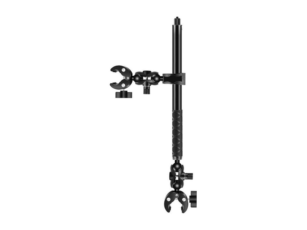 Držiak má dva typy svoriek: jednu dvojhlavú a jednu jednohlavú, obe sú vybavené 1/4-palcovými skrutkami. Prvá svorka sa používa na zabezpečenie 1/4-palcového otvoru pre skrutku v spodnej časti selfie tyče, zatiaľ čo druhá svorka zabezpečuje horný koniec tyče. Vďaka dvojitej svorke je selfie tyč stabilnejšia a poskytuje väčšiu bezpečnosť a stabilitu pri fotografovaní. Odteraz sa už nemusíte obávať rozmazaných fotografií.