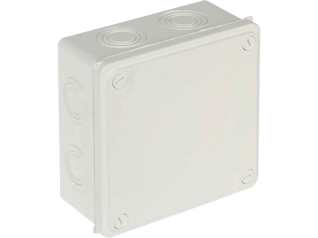 Puszka instalacyjna odgałęźna, natynkowa, 7-mio wlotowa. Wymiary: 125x125x50 mm. Stopień ochrony: IP-67 przy zastosowaniu dławików gwintowych (puszka nie zawiera dławików w komplecie).