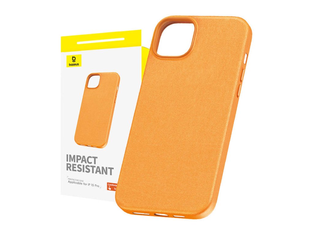 Puzdro Baseus Fauxther Series pre iPhone 15 Pro (oranžové)