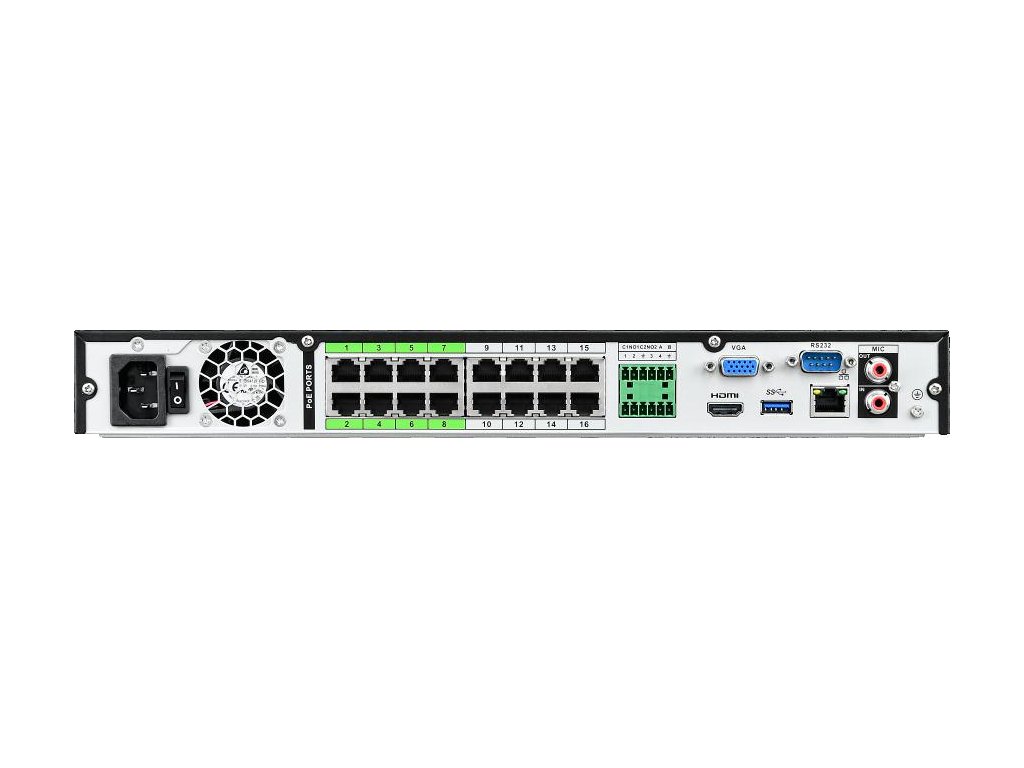 Rejestrator IP 16 kanałowy 2 dyskowy serii BCS LINE, rejestrator przystosowany do współpracy z kamerami o rozdzielczości maksymalnej 16Mpx. Wyjście wideo HDMI o rozdzielczości 4K, wbudowany 16 portowy switch PoE 802.3 af/at o mocy 130W.
