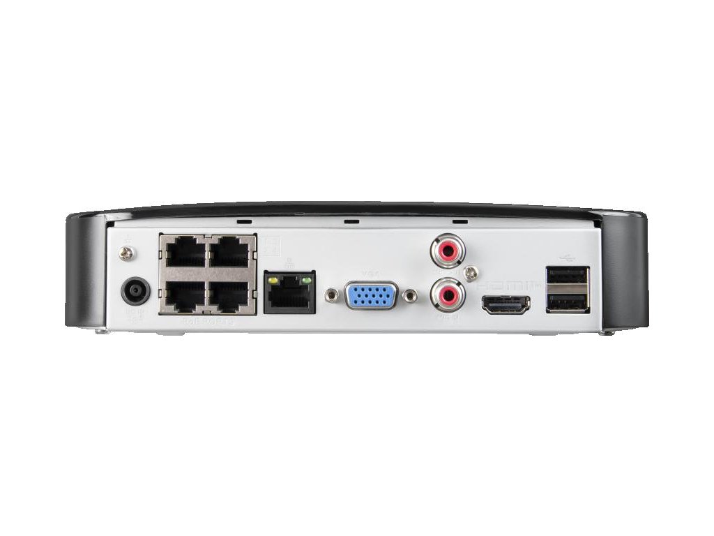 Rejestrator IP 4 kanałowy marki BCS LINE. Przystosowany do współpracy z kamerami o rozdzielczości maksymalnej 12Mpx. Wbudowany 4 portowy switch PoE 36W.