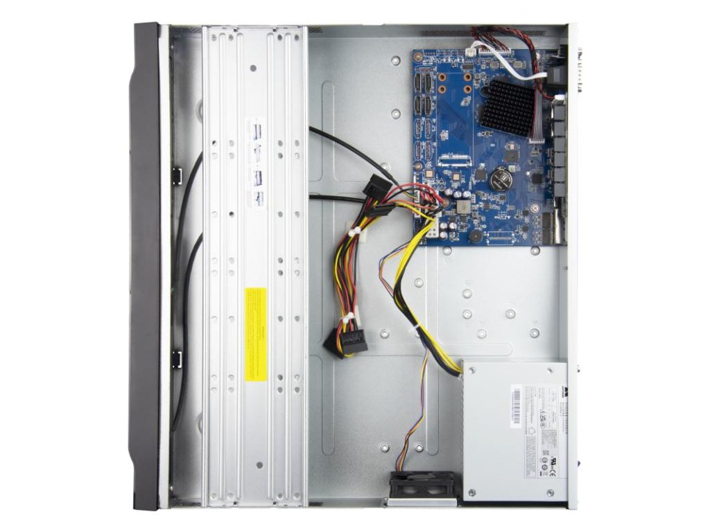 - 4 dyski SATA do 20 TB, 2×HDMI 8K + 2×VGA, 16 alarmów I/O, audio, RS232/485, 3×USB