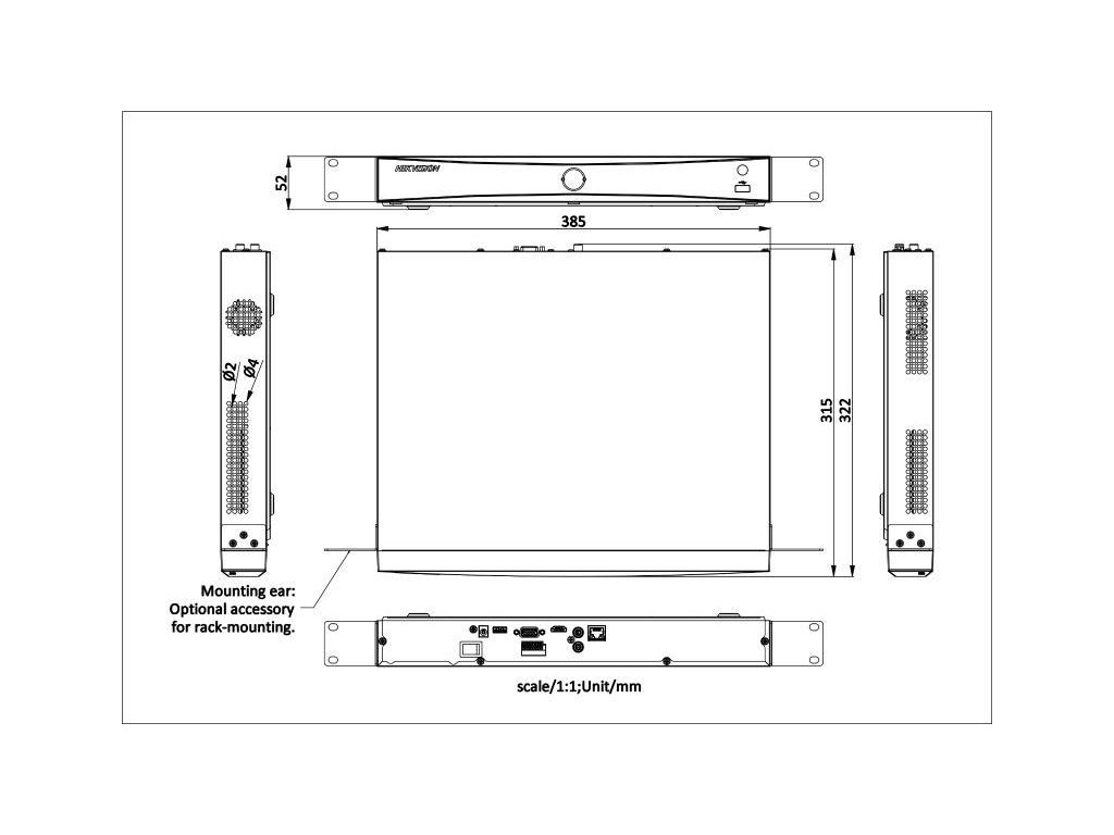 | Wyjście VGA | 1‑kanał, 1920×1080/60Hz, 1280×1024/60Hz, 1280×720/60Hz |
