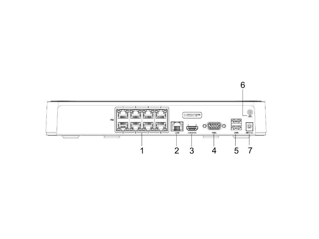 - Złącza: HDMI, VGA, LAN, PoE, zasilanie, GND