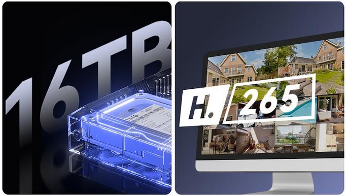 Rejestrator obsługuje dyski twarde o pojemności do 16 TB, co znacząco wydłuża czas przechowywania zapisów wideo i pozwala na archiwizację dużej ilości materiału bez konieczności częstego nadpisywania danych.