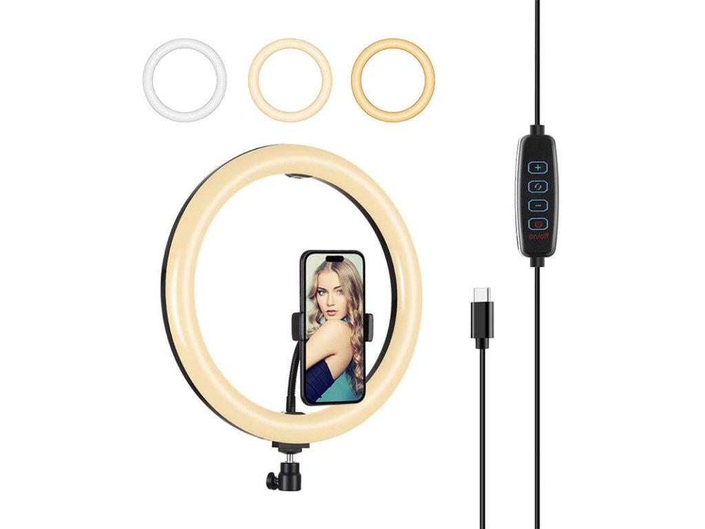 Port typu C vám umožňuje pripojiť lampu k viacerým zariadeniam, napríklad k stolovému počítaču, notebooku alebo nabíjačke typu C. Vďaka tomu si môžete užívať kruhové osvetlenie LED kedykoľvek a kdekoľvek.