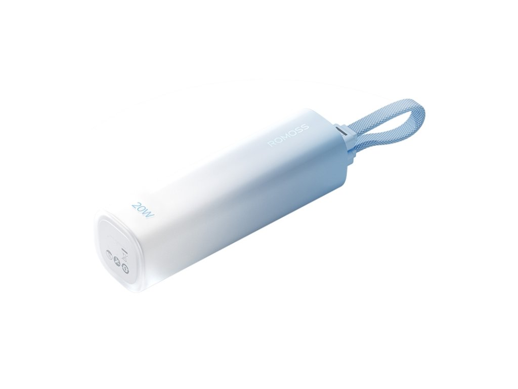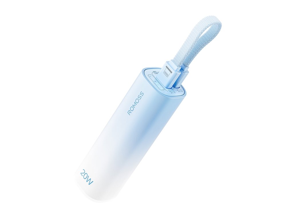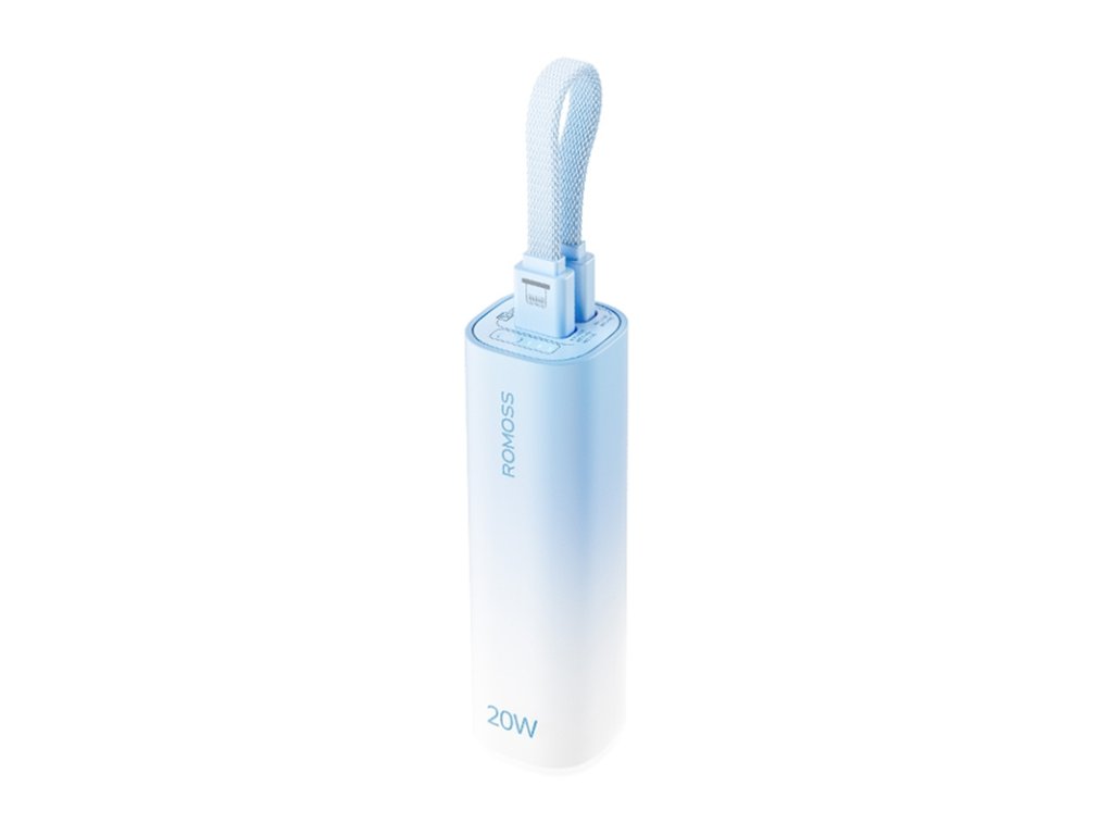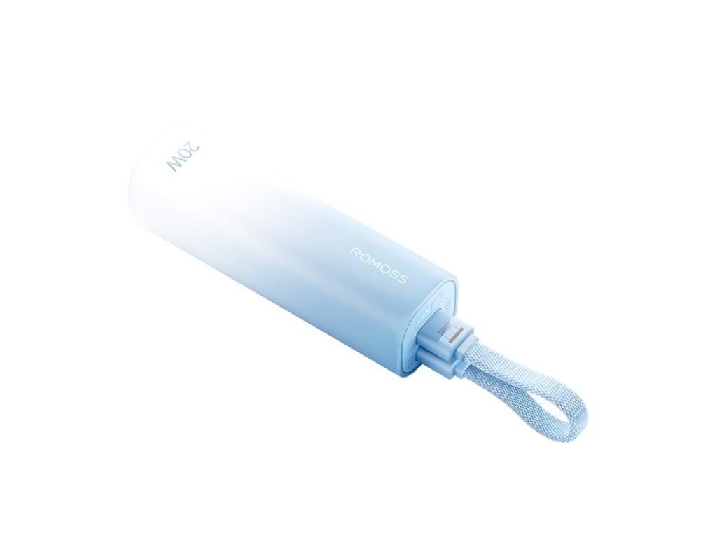 Mini powerbanka Romoss PSC05C kombinuje kompaktný dizajn s elegantnou estetikou. Jej modré puzdro s jemným gradientom evokuje pokoj oceánu a vďaka malým rozmerom - porovnateľným s fľaštičkou podkladového krému - sa vám ľahko zmestí do vrecka, kabelky alebo dokonca vedľa kľúčov. Je to ideálna voľba pre tých, ktorí si cenia mobilitu a štýl a potrebujú spoľahlivý zdroj energie počas celého dňa.