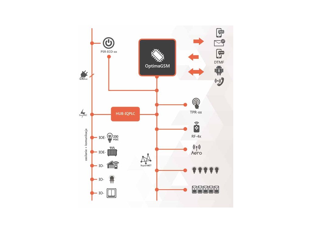 - komunikacja SmartPLC z Hub-IQPLC po budynkowej instalacji elektrycznej NN,
