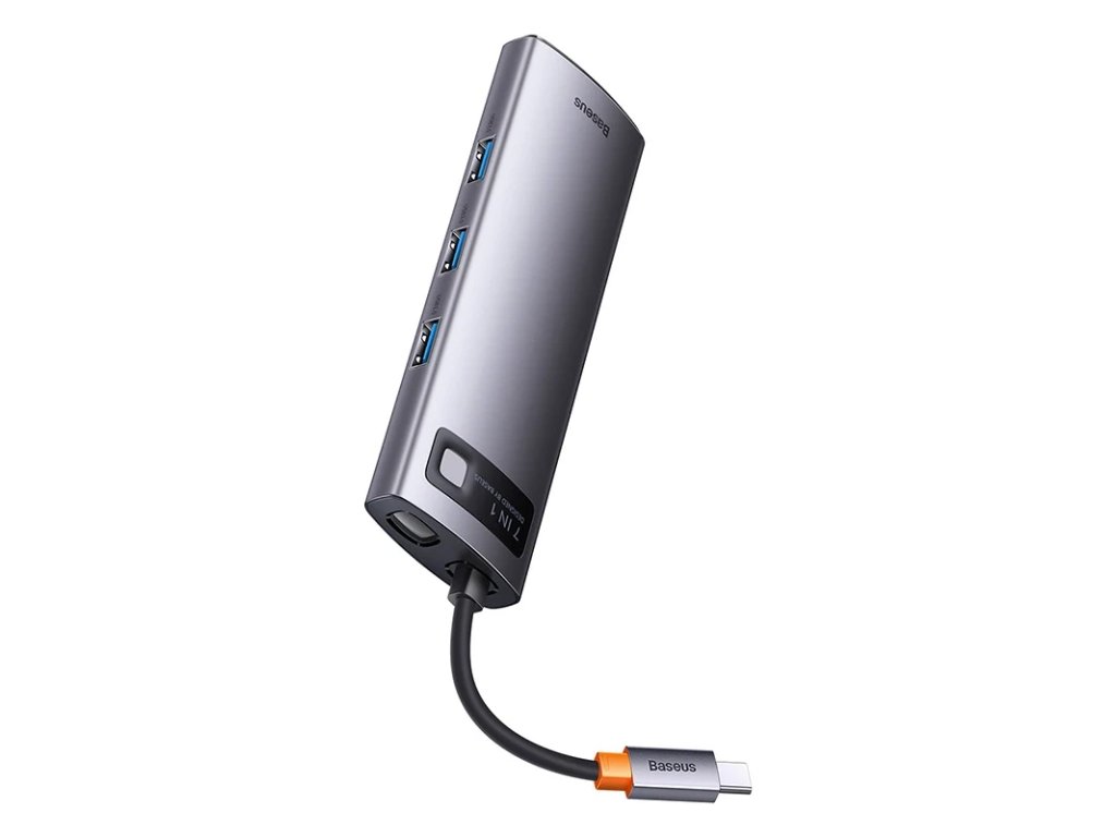 Použite len jeden vstup USB-C svojho notebooku a získajte možnosť pripojiť k nemu niekoľko rôznych zariadení. Rozbočovač od spoločnosti Baseus je vybavený 7 portami, ako napríklad USB-C PD, HDMI, VGA, 3 USB 3.0 a RJ45 Ethernet. Teraz môžete ľahko zvýšiť funkčnosť svojho počítača a uľahčiť si prácu. Už žiadne problémy s príliš malým počtom portov!