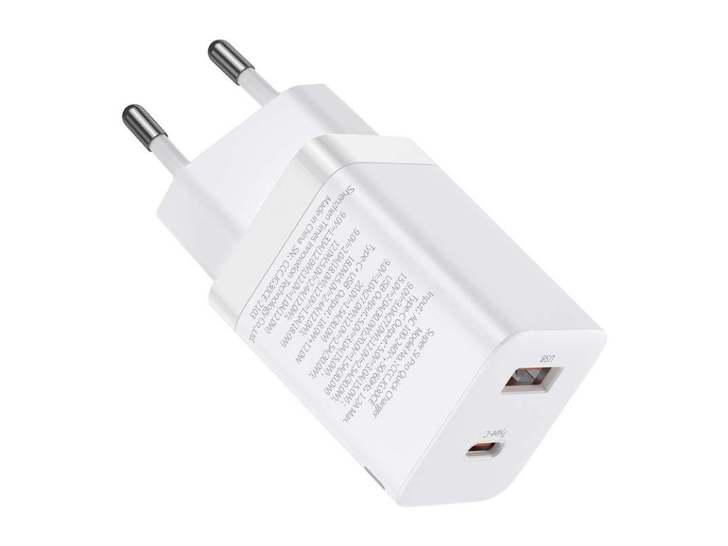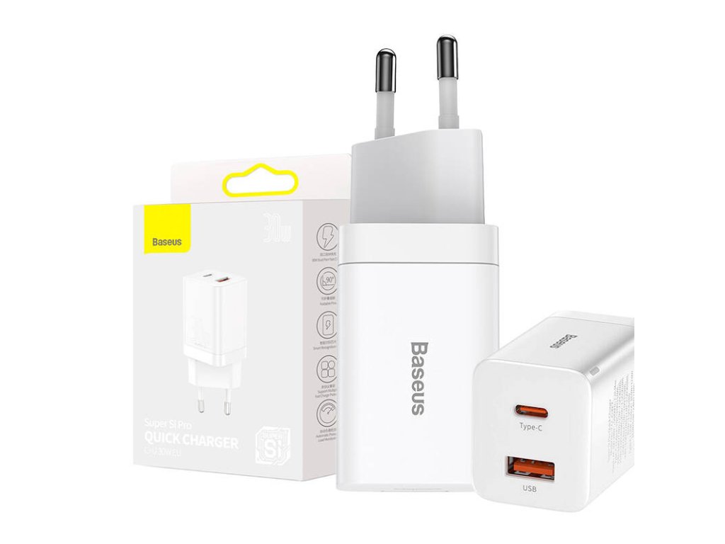 Rýchlonabíjačka Baseus Super Si Pro USB + USB-C 30 W (biela)