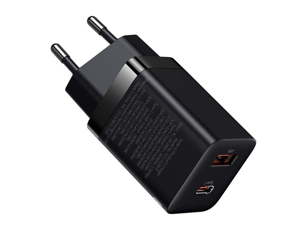 Rýchlonabíjačka Baseus Super Si Pro USB + USB-C 30 W (čierna)