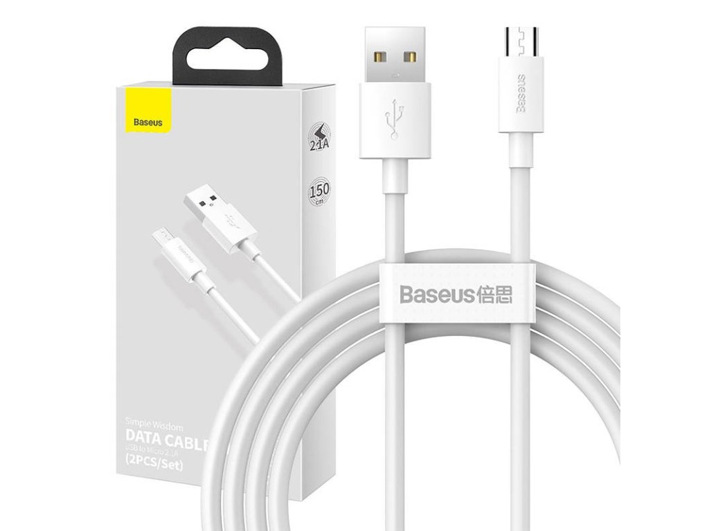 Sada dátových káblov Baseus Simple Wisdom USB to Micro 2.1A (2ks/sada) 1,5m biela