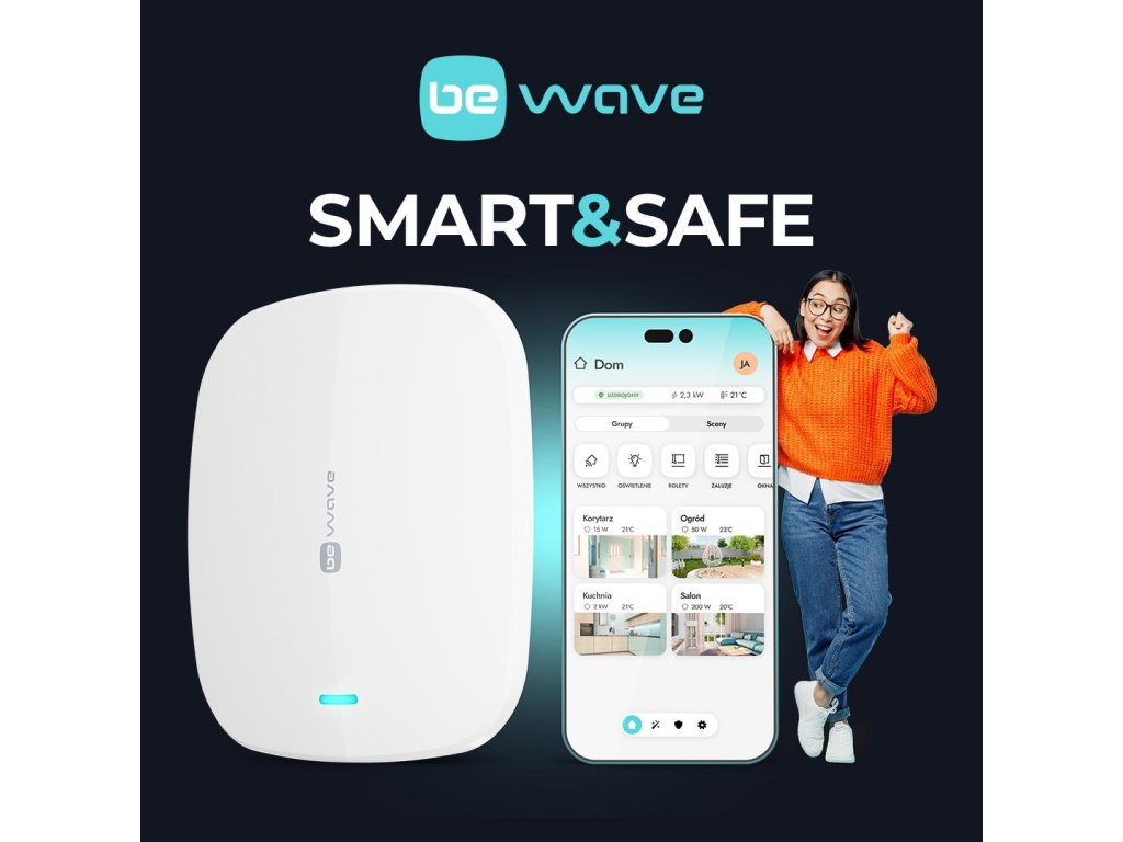 Smart HUB jest sercem systemu BE WAVE. To niewielkie urządzenie o wyjątkowo dużych możliwościach. W jego eleganckiej, smukłej obudowie zamknięto technologię, która umożliwia realizację wielu ciekawych i funkcjonalnych zadań, zarówno tych związanych z automatyką, jak i bezpieczeństwem.