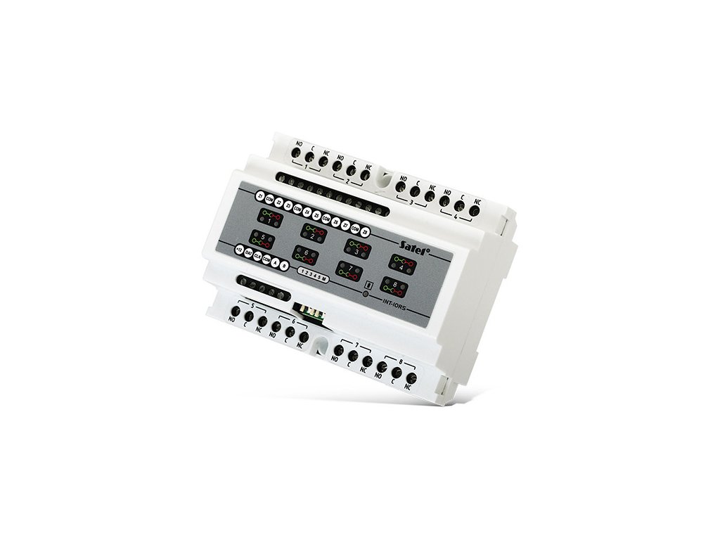 Moduł INT-IORS przeznaczony jest do realizacji bezpośredniego sterowania urządzeniami 230 V za pomocą centrali alarmowej INTEGRA. Jest on idealnym rozwiązaniem w przypadku wykorzystania możliwości oferowanych przez centrale INTEGRA do tworzenia systemu automatyki. Moduł INT-IORS przeznaczony jest do montażu na standardowej szynie DIN 35mm. Umożliwia on rozbudowę systemu INTEGRA o 8 programowalnych wyjść przekaźnikowych oraz 8 wejść z obsługą konfiguracji NO, NC, EOL oraz 2EOL.