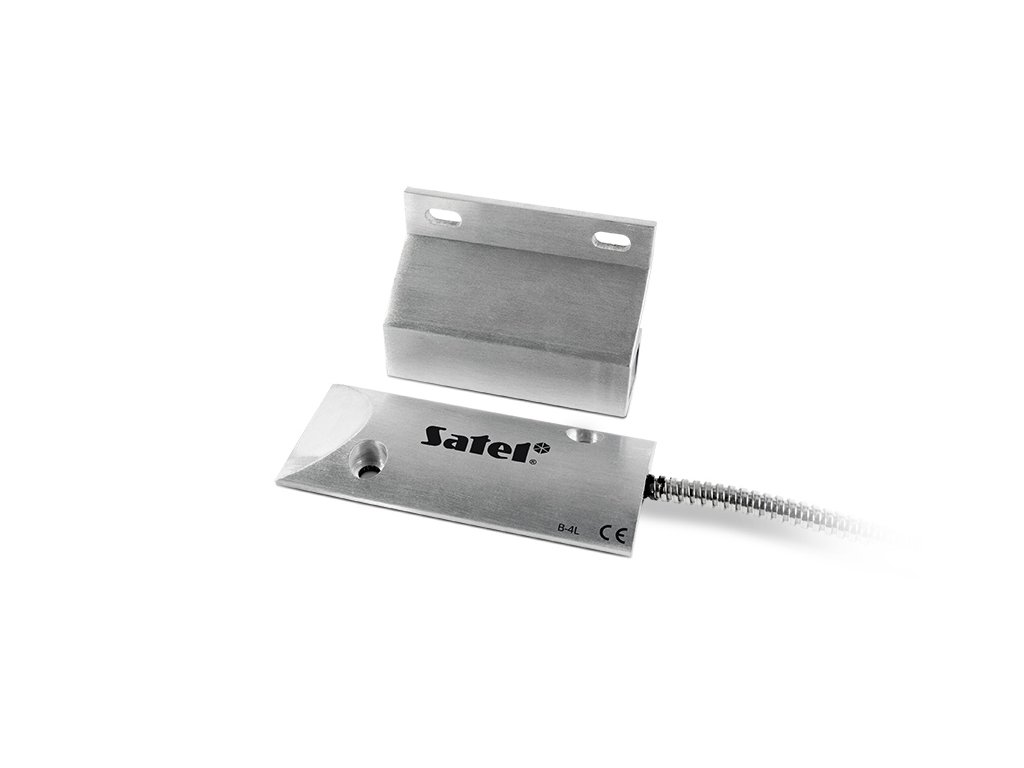Czujki magnetyczne są podstawowym elementem ochrony obwodowej. Duża, hermetyczna czujka kontaktronowa boczna w metalowej obudowie B-4L, przeznaczona do montażu powierzchniowego. Przewody w metalowej osłonie utrudniają ich uszkodzenie, dzięki czemu czujka ta doskonale sprawdzi się w miejscach szczególnie narażonych na sabotaż lub mechaniczne narażenia. Przeznaczona do przykręcana do podłoża, idealnie sprawdza się do montażu na bramach garażowych.