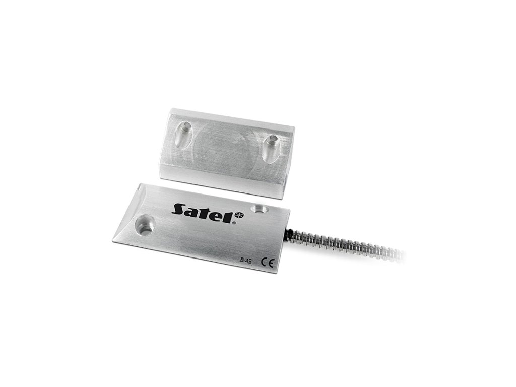 Czujki magnetyczne są podstawowym elementem ochrony obwodowej. Mała, hermetyczna czujka kontaktronowa boczna w metalowej obudowie B-4S, przeznaczona do montażu powierzchniowego. Przewody w metalowej osłonie utrudniają ich uszkodzenie, dzięki czemu czujka ta doskonale sprawdzi się w miejscach szczególnie narażonych na sabotaż lub mechaniczne narażenia. Przeznaczona do przykręcana do podłoża, idealnie sprawdza się do montażu na bramach garażowych.