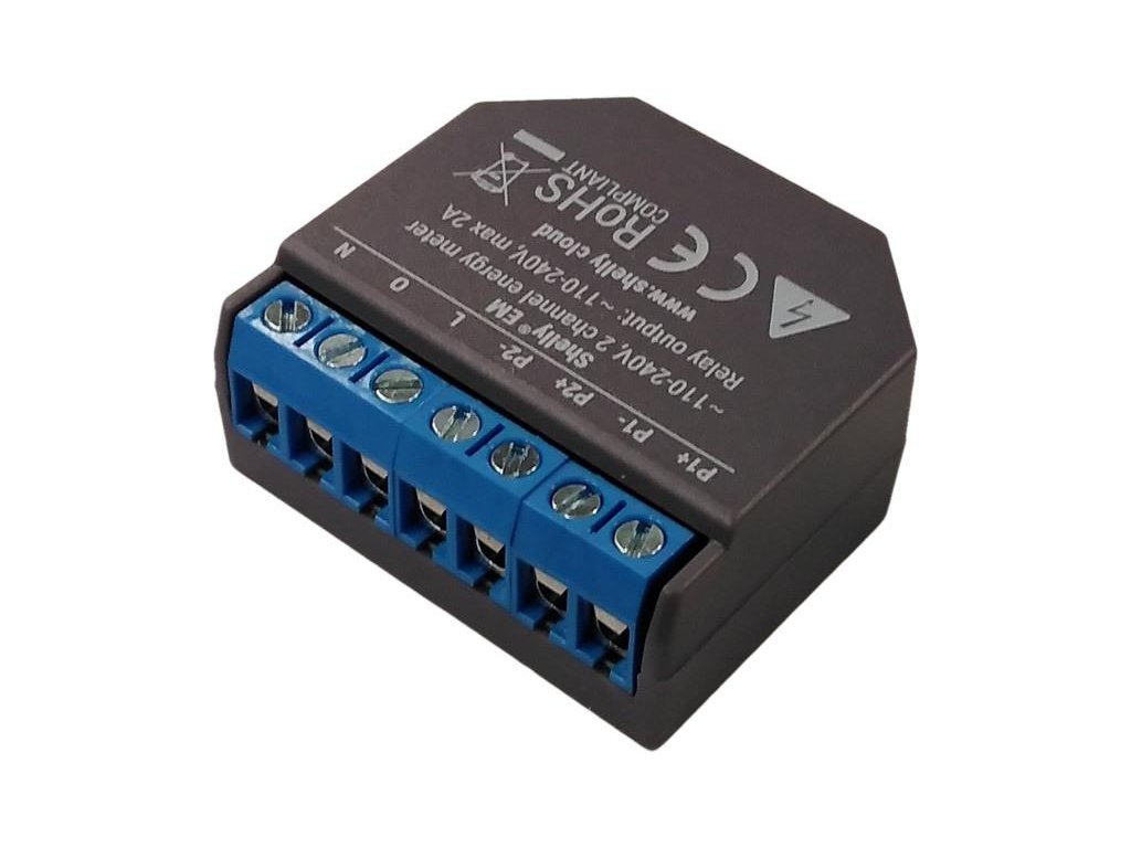 Shelly EM – Dwukanałowy licznik energii Wi-Fi z kontrolą stycznika i monitoringiem zużycia prądu, archiwizacja do 365 dni