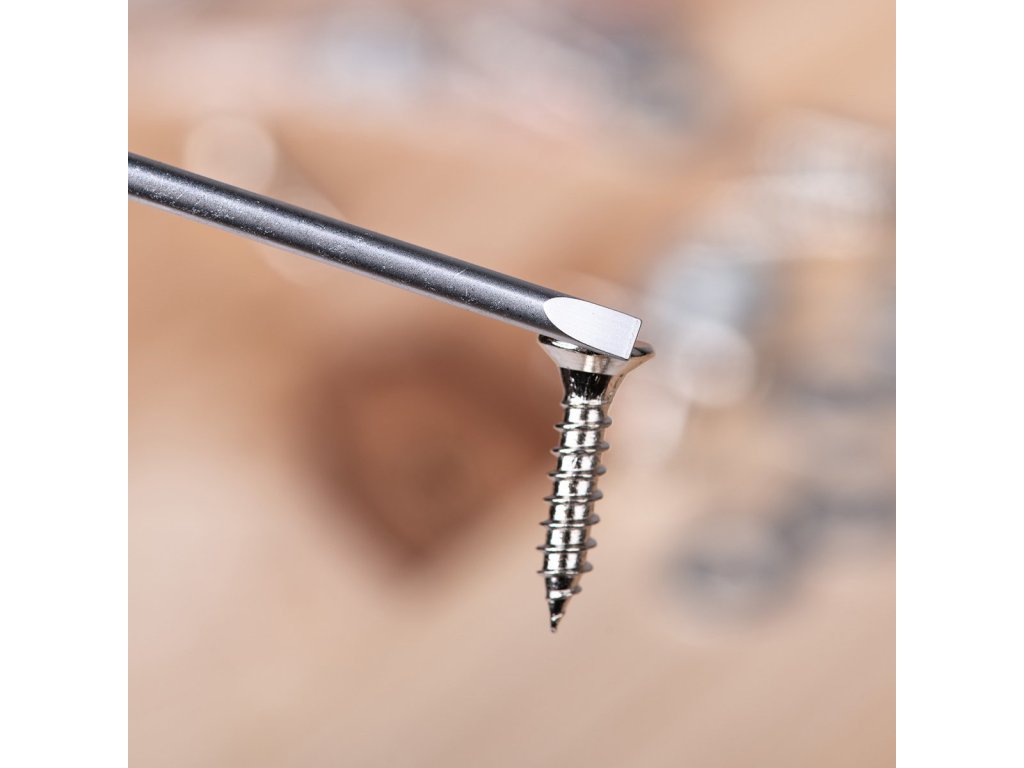 Pohodlný na používanie, robustný plochý skrutkovač 3x100 mm v žltej farbe. Rukoväť výrobku je vyrobená z kvalitného plastu. Je vybavená praktickým otvorom, ktorý umožňuje zavesenie nástroja napríklad na nástenku. Skrutkovač je vybavený aj magnetickým hrotom, ktorý vám výrazne uľahčí prácu.