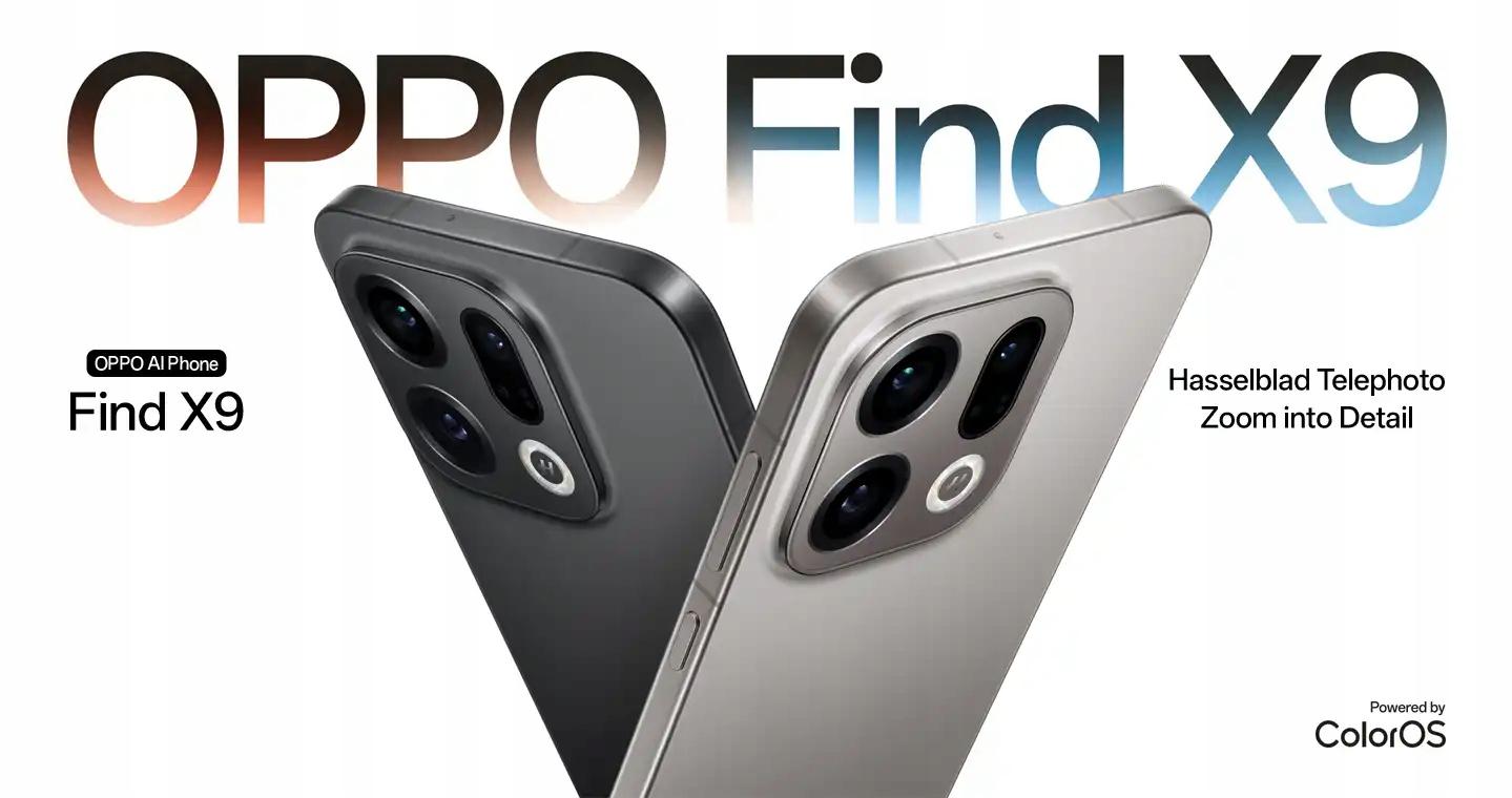 OPPO Find X9 oferuje profesjonalny system trzech obiektywów stworzony we współpracy ze szwedzką marką Hasselblad, słynącą z aparatów używanych podczas misji Apollo. Główny sensor 50 MP z ogromną matrycą 1/1.4" i jasną przysłoną f/1.6 rejestruje o 57% więcej światła niż poprzednik, gwarantując wyraźne zdjęcia nawet po zmroku. Teleobiektyw peryskopowy 50 MP z matrycą 1/1.95" zapewnia 3-krotny zoom optyczny oraz imponujący zakres przybliżenia aż do 120× wspierany algorytmami AI. Całość uzupełnia ultraszerokokątny aparat 50 MP o kącie widzenia 120° oraz innowacyjny obiektyw barwowy z 9 kanałami spektralnymi, który inteligentnie odwzorowuje naturalne kolory w każdym kadrze.