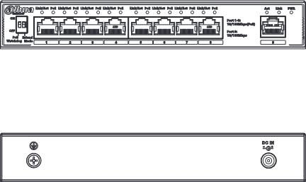 | Opis gniazd funkcyjnych | Port 1-8: 8 × RJ-45 10/100 Mbps (PoE); Port 9: 1 × RJ-45 10/100 Mbps (uplink) |