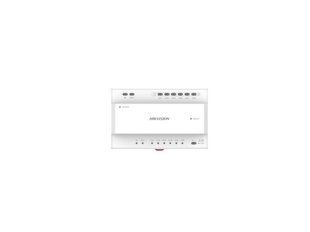 Dystrybutor zasilania DS-KAD7060EY to urządzenie, które umożliwia podłączenie i jednoczesne zasilanie urządzeń peryferyjnych Hikvision (monitorów, domofonów, paneli drzwiowych) za pomocą 2-żyłowego kabla dystrybucyjnego, a także zawiera 2 dodatkowe porty do rozbudowy (do 15 dystrybutorów szeregowo).