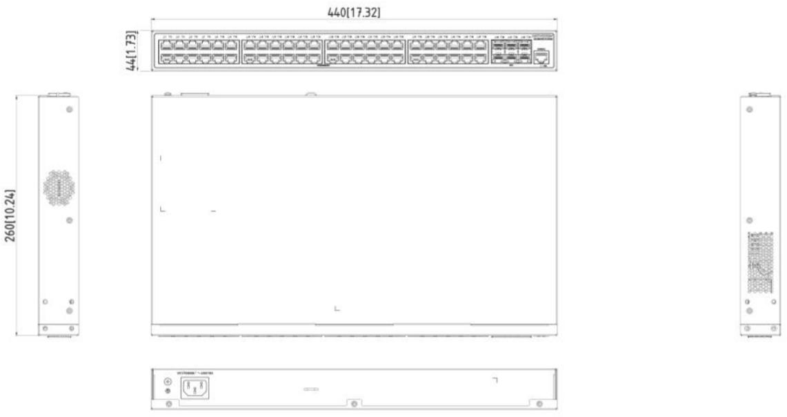 | Porty sieciowe | 48 × Gigabit RJ45 port, 6 × 10G fiber optical port |