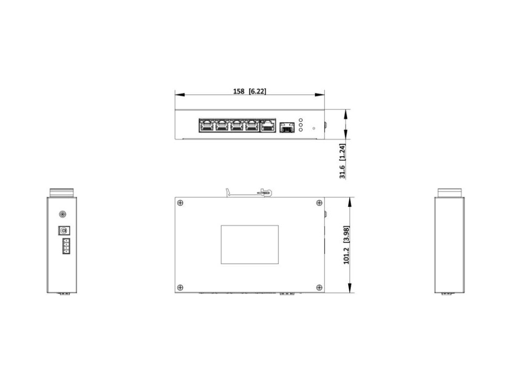 | Porty sieciowe | 4 × 10/100 Mbps PoE, 1 × Gigabit RJ45, 1 × Gigabit światłowodowy |