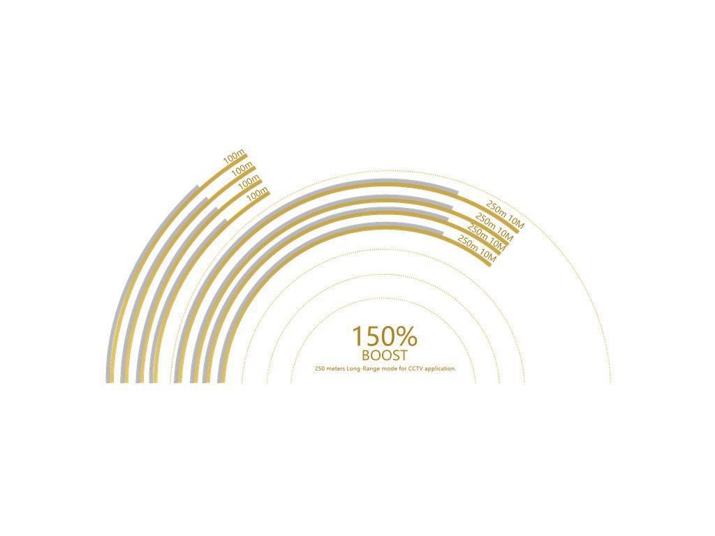 Dzięki wykorzystaniu funkcji Long-Range można zasilić urządzenia oddalone do 250m od urządzeniu przy niższym transferze.