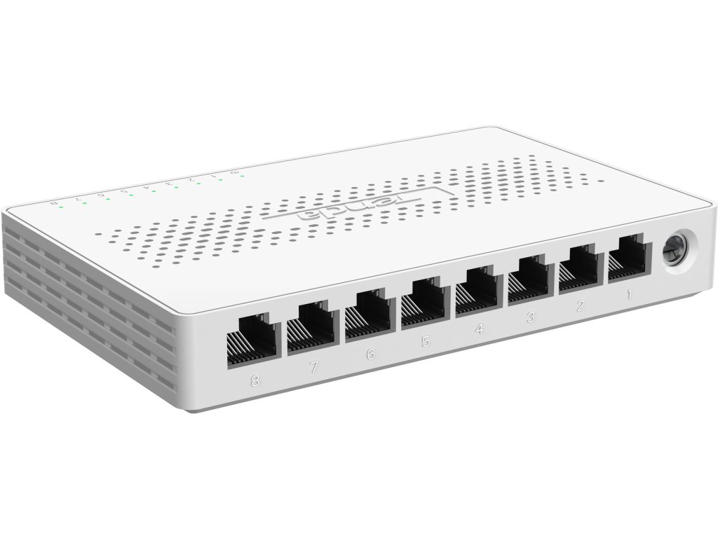 - 8-portowy switch z technologią Plug and Play – bez konieczności konfiguracji.
