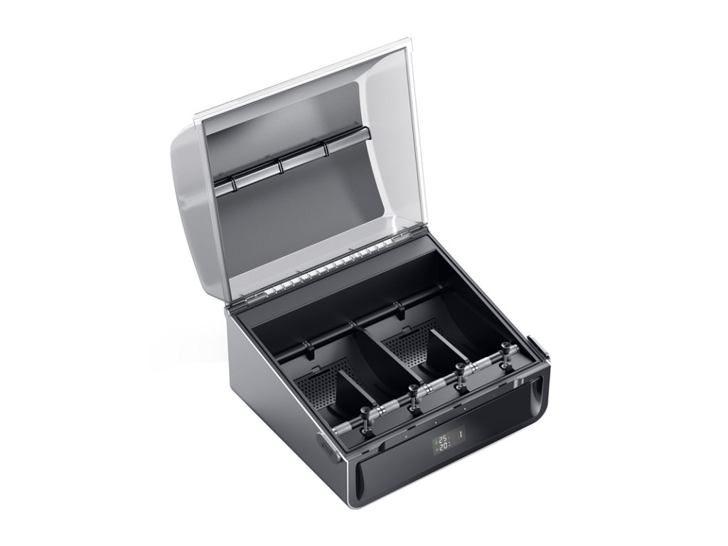 Vzduchotesná konštrukcia CFS podporená špeciálnymi absorbérmi vlhkosti účinne chráni filament pred absorbovaním vlhkosti zo vzduchu. Zabudovaný displej teploty a vlhkosti umožňuje priebežné monitorovanie podmienok skladovania a systém upozorní používateľa, ak sa prekročí optimálna úroveň vlhkosti. Mechanizmus pružinovej lišty zabraňuje vyskočeniu filamentu zo slotu počas tlače a kompatibilita s kartónovými cievkami Creality radu Hyper znamená, že môžete využívať ekologické riešenia bez ďalších adaptérov.