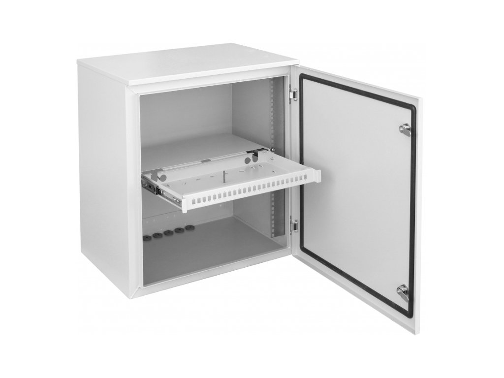 Oferowany produkt to szafa RACK 19 przystosowana do wykorzystania na zewnątrz (outdoor). Wykonana została z blachy o grubości 1 mm, pokrytej powłoką Magnelis. Jest odporna na korozję i hermetycznie zamykana, chroni sprzęt telekomunikacyjny przed uszkodzeniami mechanicznymi. Szafa wyposażona jest w 6 otworów o średnicy 24 mm znajdujących się w dolnej ściance (zaślepione zostały dławikami).