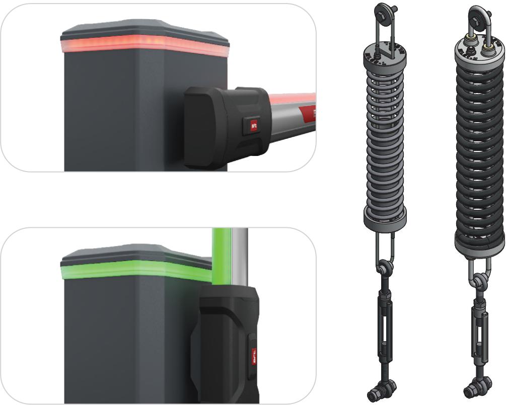 - Elastyczna konfiguracja: Wymaga jedynie dobrania odpowiadającego Twoim potrzebom zestawu sprężyny, do jednej wersji szlabanu. Wszystkie elementy sprężyny kompensacyjnej są wstępnie złożone. Instalacja jest szybka i prosta.