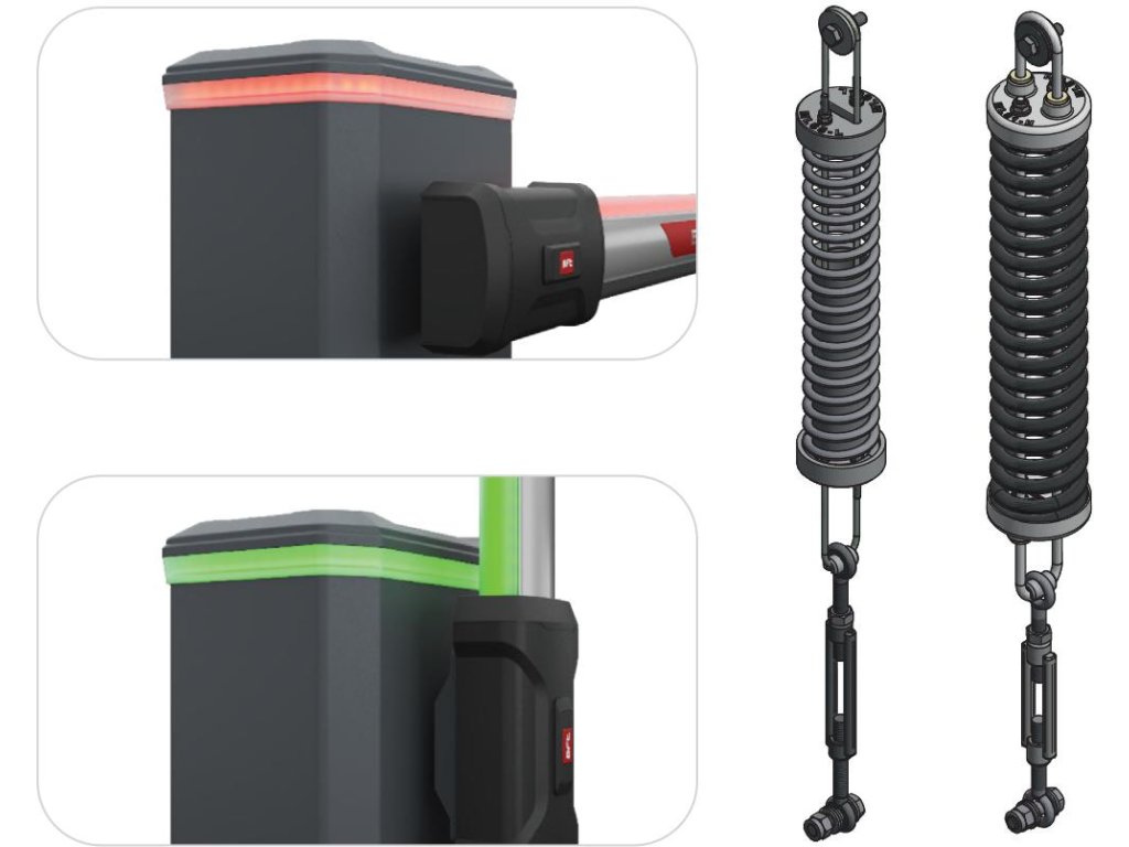 - Elastyczna konfiguracja: Wymaga jedynie dobrania odpowiadającego Twoim potrzebom zestawu sprężyny, do jednej wersji szlabanu. Wszystkie elementy sprężyny kompensacyjnej są wstępnie złożone. Instalacja jest szybka i prosta.