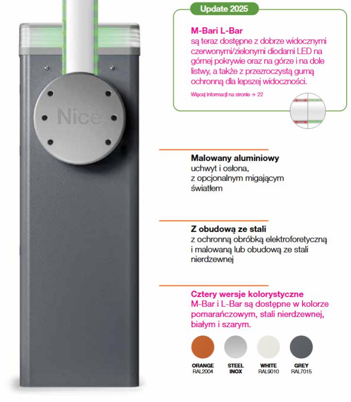 - Lepsza widoczność: Dodatkowe światła LED (OPCJA) na górnej części i po bokach ramienia oraz opcjonalna taśma LED (do montażu po jednej ze stron) tworzą dynamiczny efekt sygnalizacji świetlnej, usprawniając kontrolę dostępu.