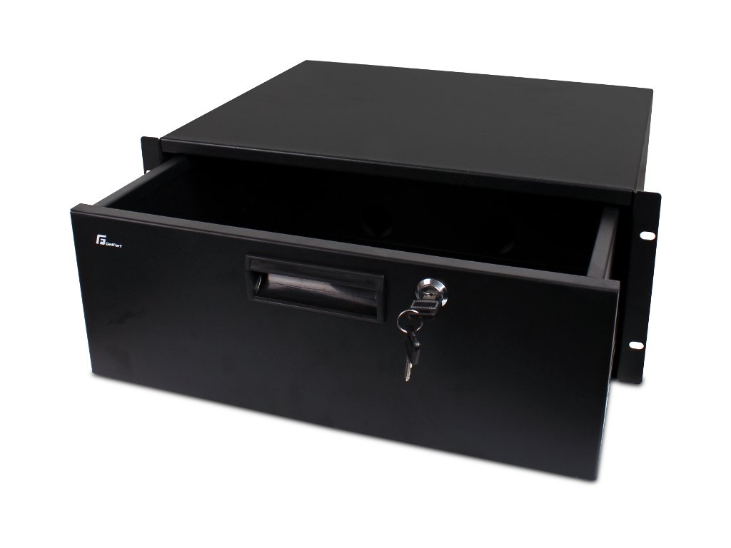Szuflady rack przeznaczone do przechowywania, dodatkowego zabezpieczenia dokumentów, lub innych przedmiotów wewnątrz szafy rack.