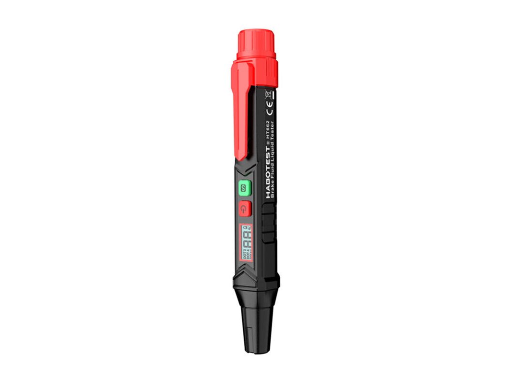 Habotest HT662 vám umožní merať percentuálnu koncentráciu vody obsiahnutej v brzdovej kvapaline. Podporuje rôzne typy kvapalín a výsledky merania zobrazuje na malej obrazovke. Je vybavený citlivou sondou a vyniká rýchlou odozvou. Okrem toho poskytuje zvukový a svetelný alarm. Po 5 minútach nepoužívania sa automaticky vypne a je napájaný 2 batériami AAA (sú súčasťou dodávky).