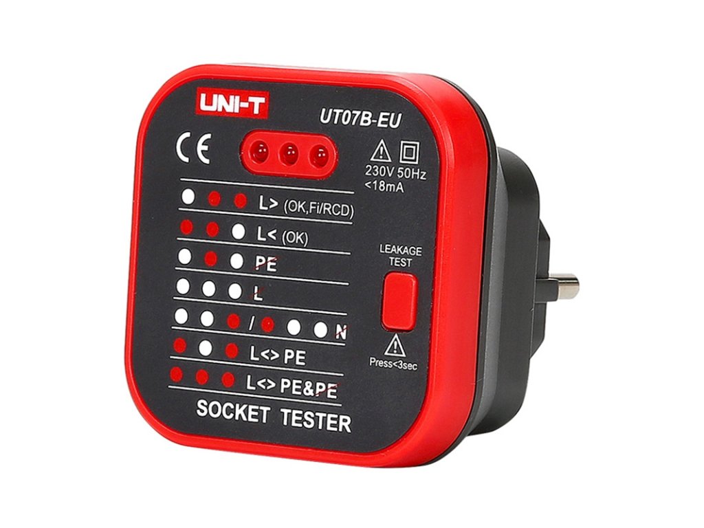 Tester sieťových zásuviek UNI-T UT07B-EU je rozšírená verzia modelu UT07A-EU, ktorá okrem štandardnej diagnostiky káblov ponúka aj zabudovaný prúdový chránič (RCD). Vďaka tomu zariadenie nielenže zisťuje nezrovnalosti v zapojení inštalácie, ale umožňuje aj kontrolu účinnosti ochrany pred zásahom elektrickým prúdom.