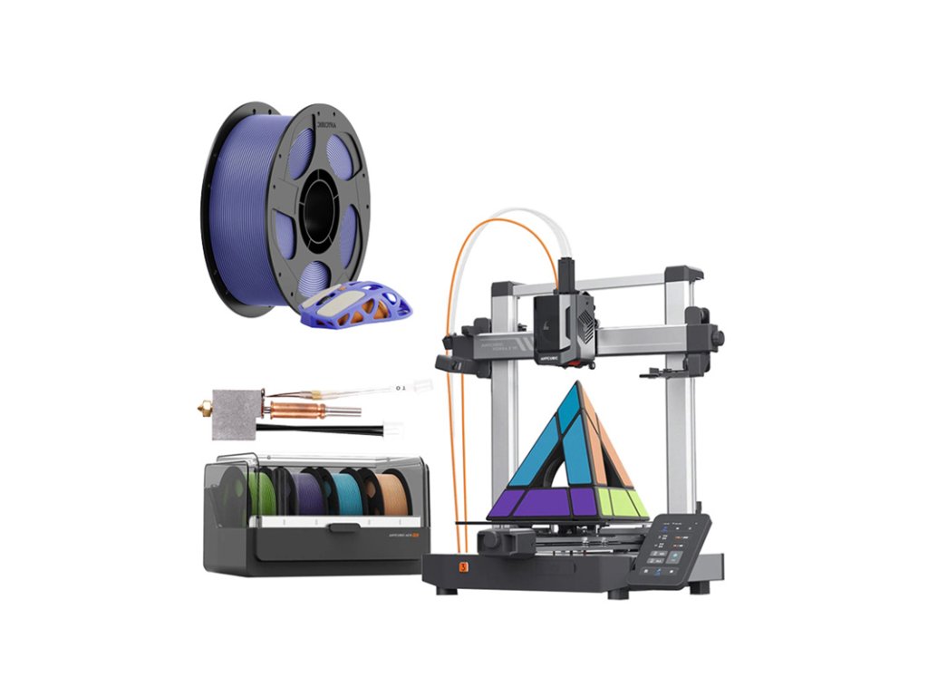 Anycubic Kobra 3 V2 Combo je viac než len súprava na 3D tlač. Je to nástroj, ktorý v sebe integruje špičkovú automatizáciu, viacfarebnú tlač, aktívne sušenie vlákna a inteligentný softvér. Vďaka podpore vysokých teplôt sušenia až do 55 °C, kapacitnému 4,3-palcovému dotykovému displeju a ovládaniu cez panel, aplikáciu a USB máte úplnú slobodu výberu, ako a kde budete pracovať na svojich návrhoch.