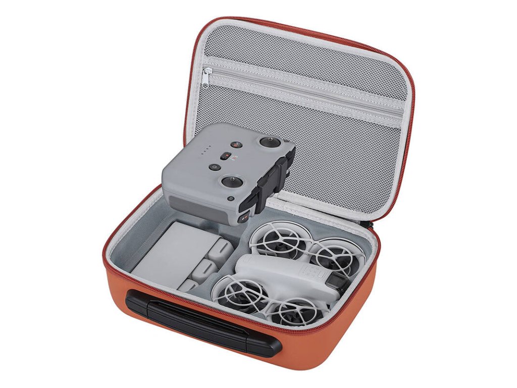 Kompaktná prepravná taška SUNNYLIFE Combo bola vytvorená pre majiteľov DJI Neo, ktorí hľadajú pohodlný a bezpečný spôsob uloženia svojho zariadenia. Vďaka veľkej kapacite a premyslenému dizajnu do nej môžete uložiť nielen dron, ale aj ovládač RC-N3 spolu s držiakmi na tablet ZJ067 a ZJ508, originálny kryt gimbalu, nabíjací rozbočovač, až 4 batérie (vrátane jednej namontovanej v drone) a ďalšie príslušenstvo, ako sú filtre na objektívy, náhradné vrtule, skrutkovač a nabíjacie káble.